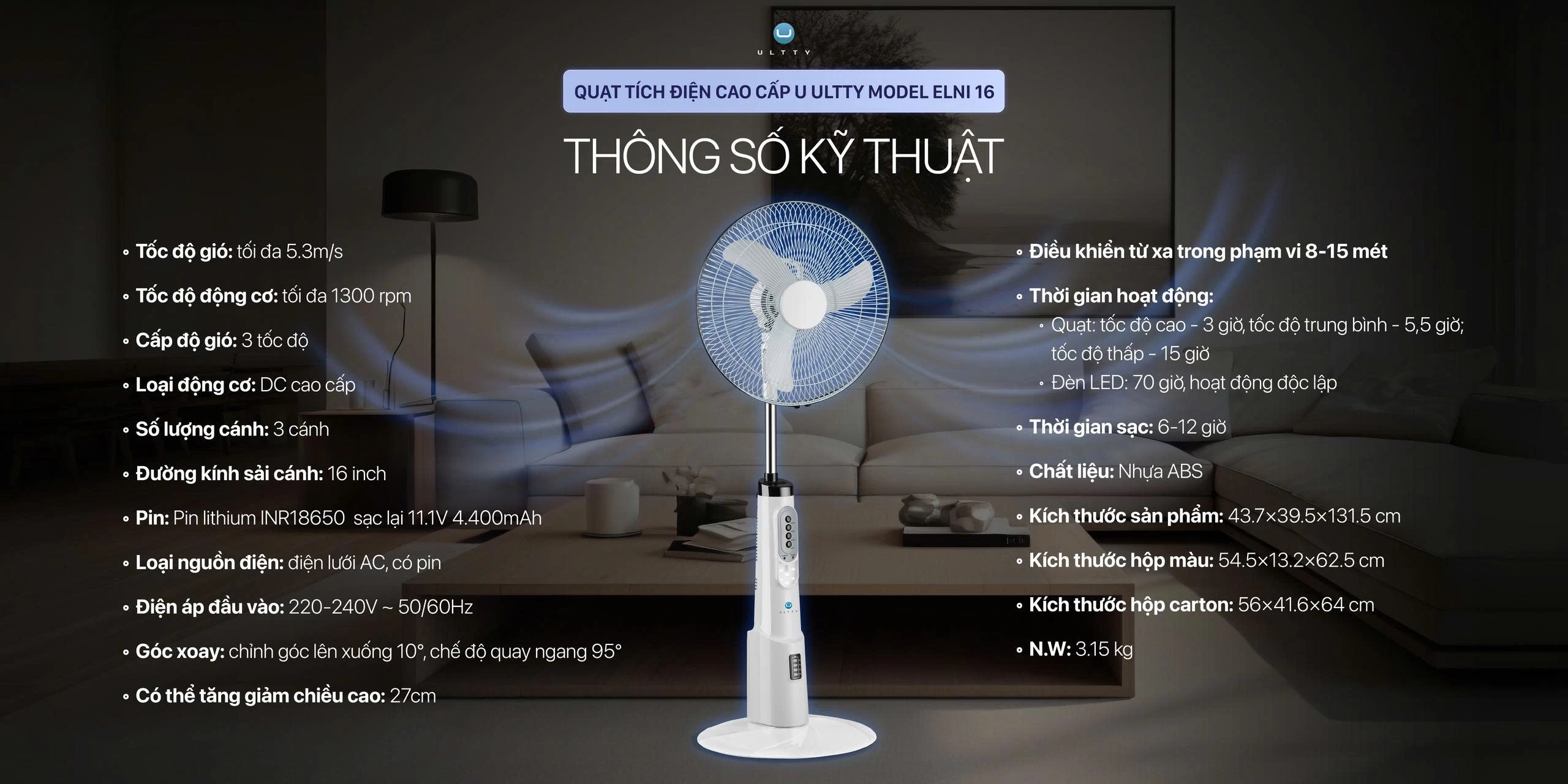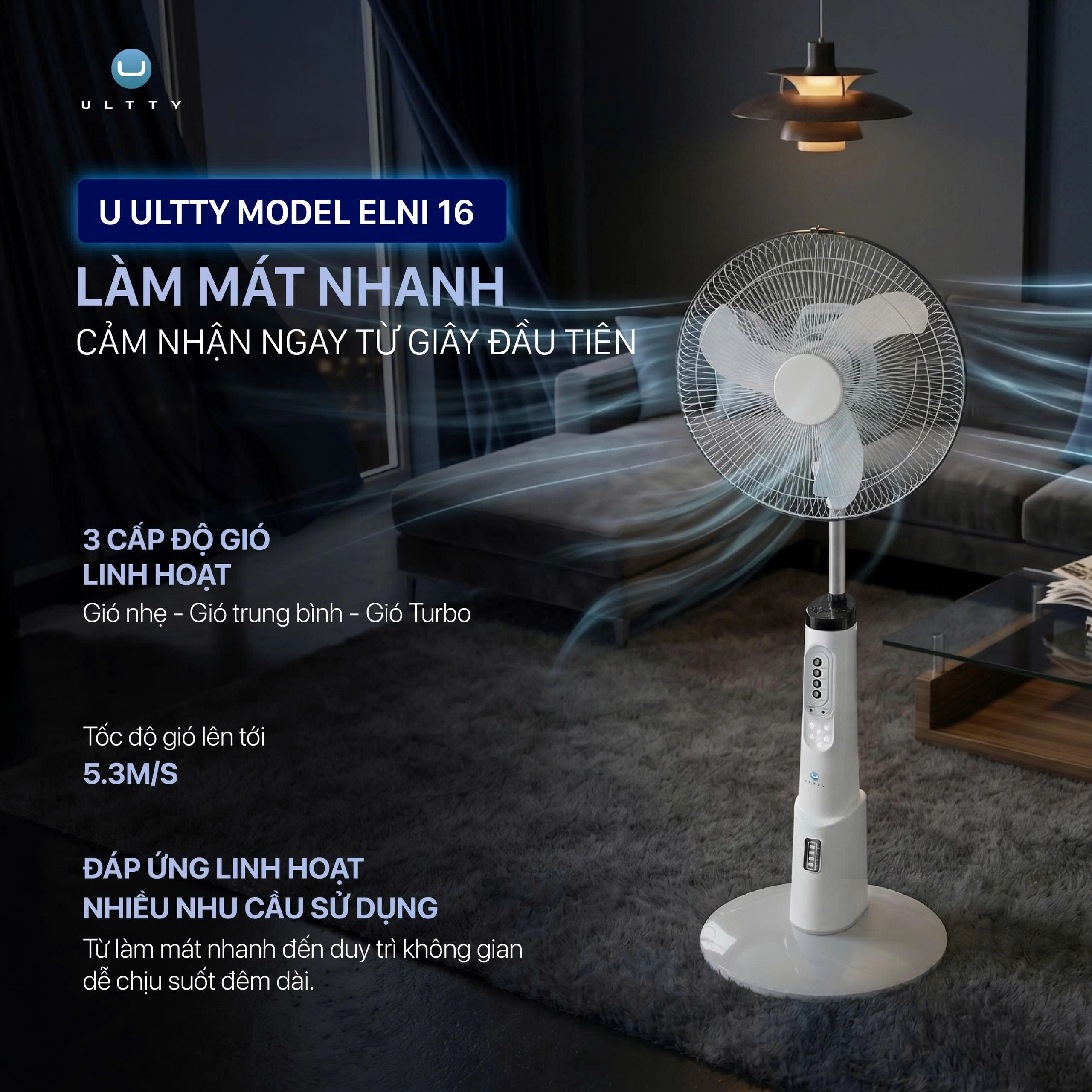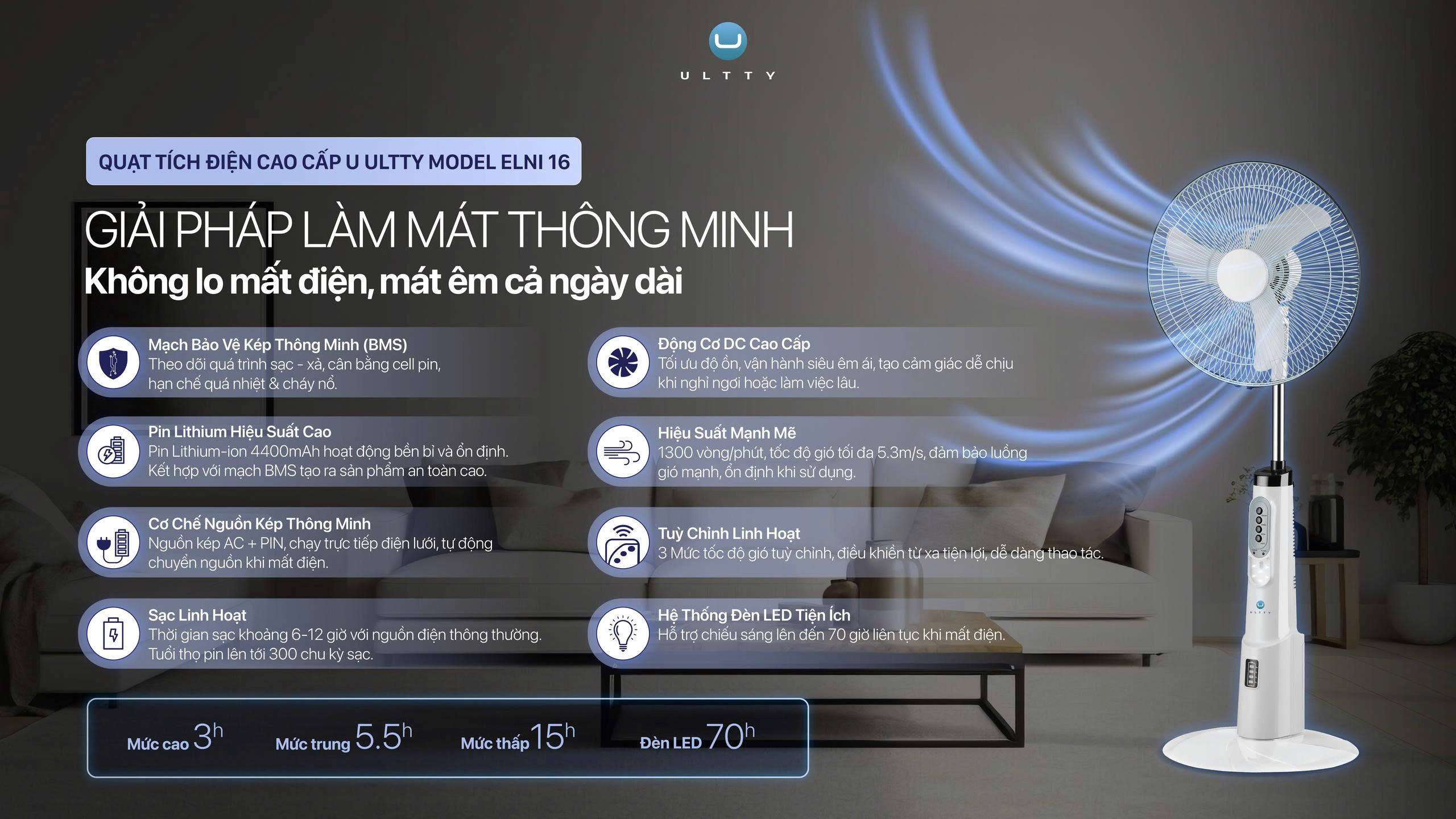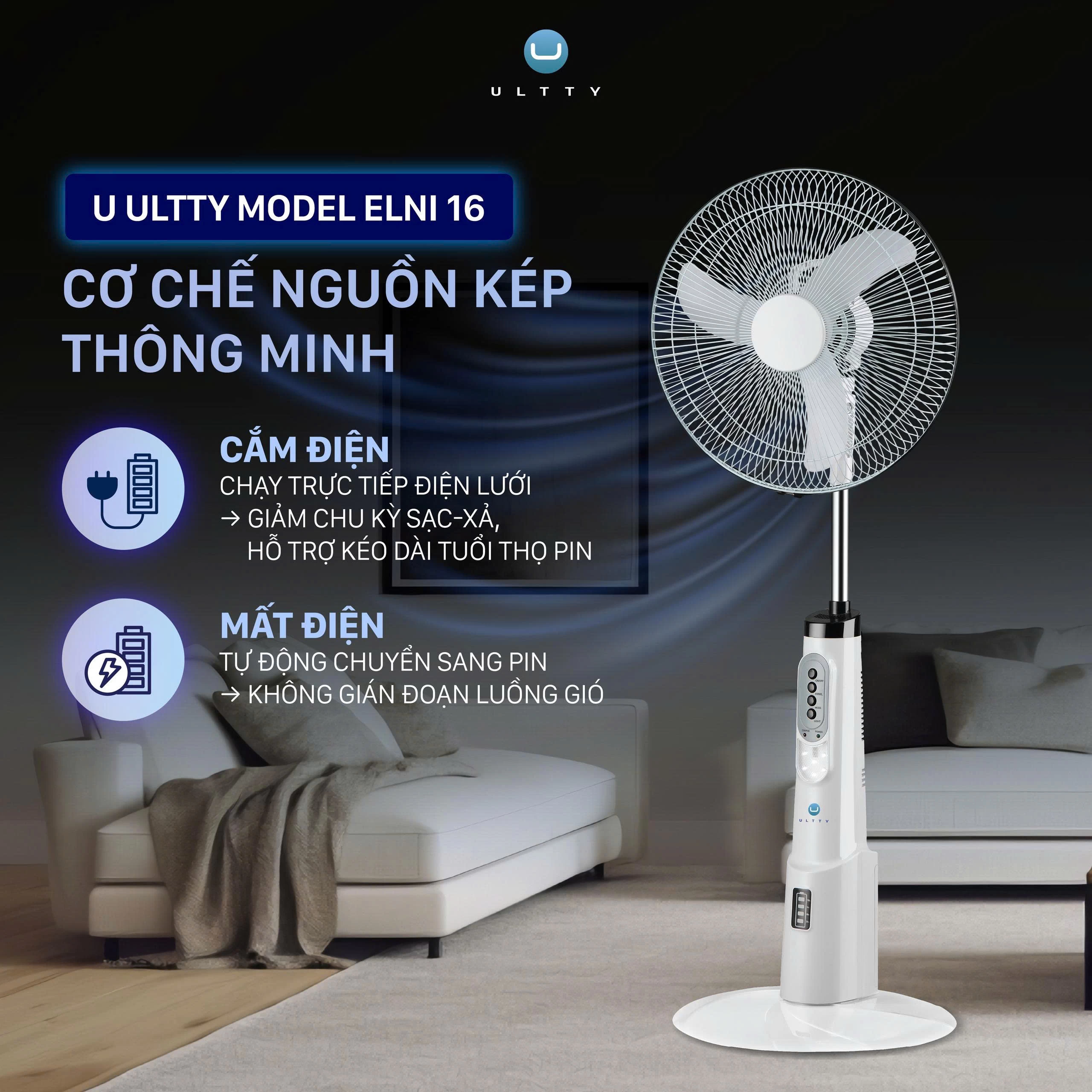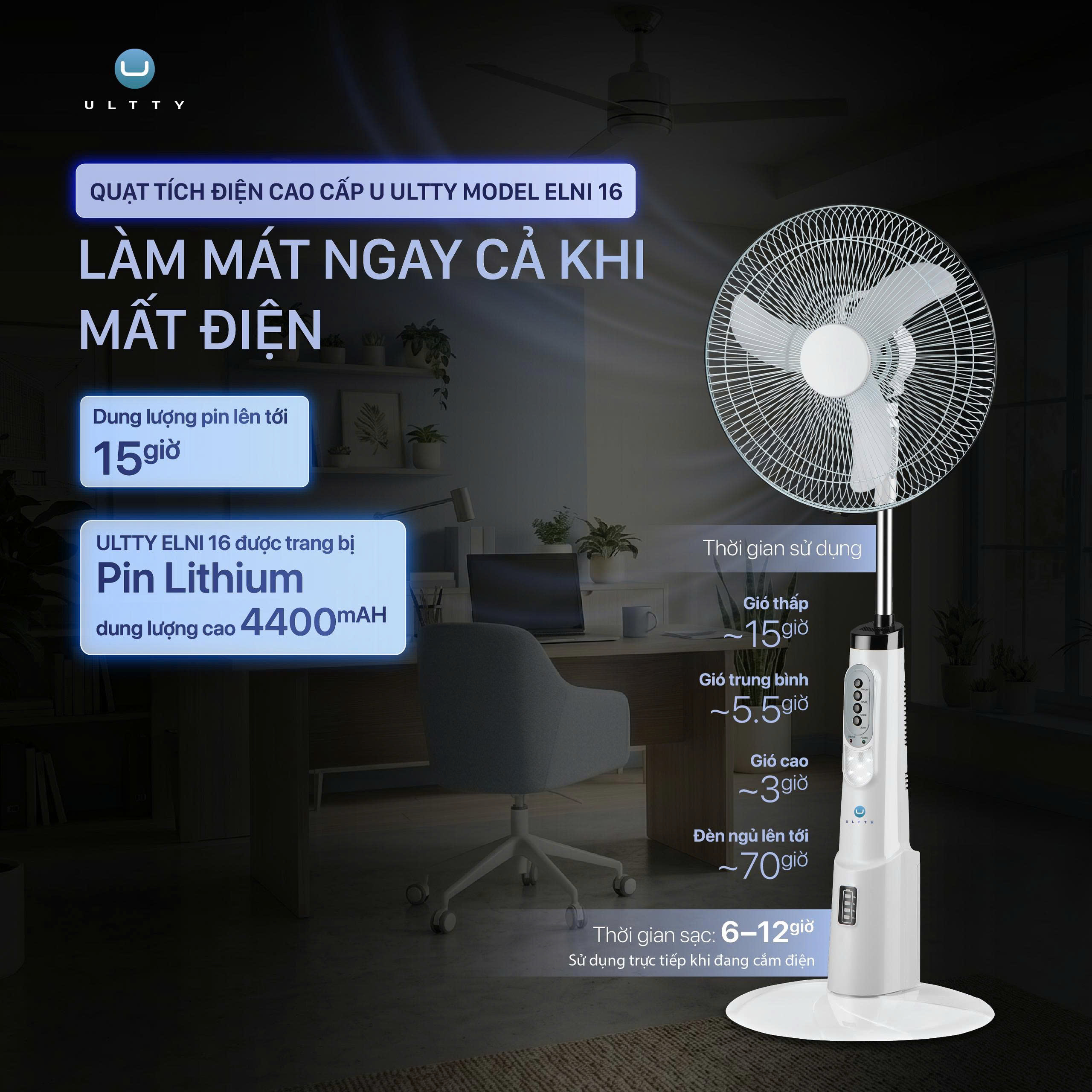 Quạt tích điện cao cấp U ULTTY ELNI 16 không chỉ giải quyết bài toán làm mát khi mất điện, mà còn mang đến tiêu chuẩn mới về an toàn và độ bền.