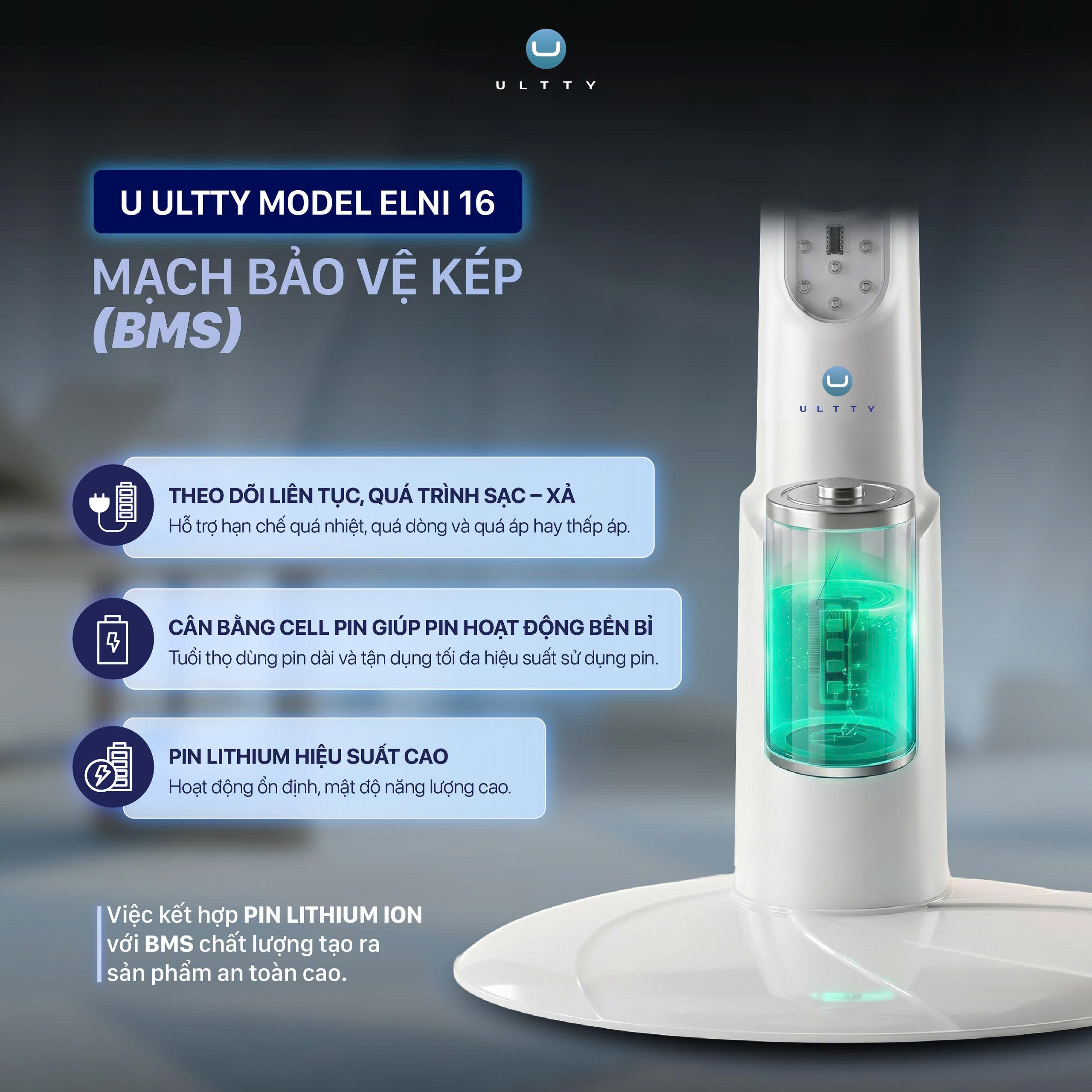 An toàn cháy nổ đối với thiết bị dùng pin là ưu tiên hàng đầu của U ULTTY. ELNI 16 được trang bị Mạch bảo vệ kép (BMS) thông minh: